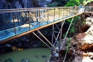 1. 湖北神农架玻璃吊桥:这座吊桥全长60米,垂直高度150米,是国内首座全透明玻璃吊桥。站在桥上,仿佛置身于空中,脚下是万丈深渊,让人心跳加速。